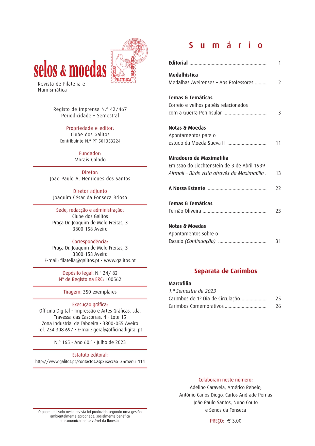 Já se encontra em distribuição a Selos & Moedas nº165.